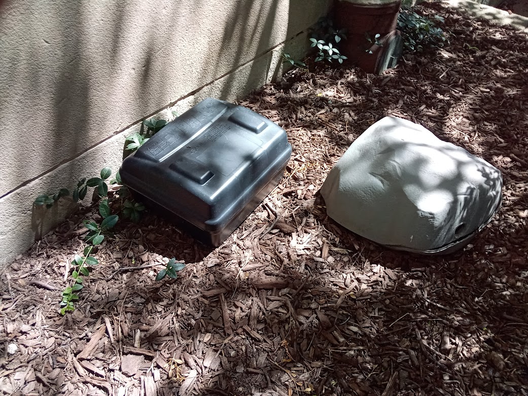A common method of controlling rats is to use boxes that contain rodenticide baits. You've probably seen these bait boxes and wondered what purpose they serve (and they're hard to miss if you live in Chicago). Bait boxes are small, black or gray plastic boxes placed around the perimeters of buildings and other structures. Some of these boxes are shaped like rocks to blend in better with landscaping (the photo at right shows two such boxes). They have two holes, one on each side, that allow rats and other target rodents to enter and eat the poison laden bait inside. The only purpose of bait boxes is to hold rodenticide baits. They're designed, as best as humanly possible, to keep people and dogs from accessing the bait, since the bait is harmful to any mammal that consumes it. The boxes are locked and can only be opened for servicing with a special key. This method of rodent control is inexpensive, easy to set up, and easy to maintain. More importantly, a bait box program covers a large area. When I worked for a pest control company in Chicago and for the Village of Niles, part of my job involved setting up and servicing these bait stations for our clients. I would determine where the best locations for placing the stations were, fill the stations with bait, and on return visits replace missing or old bait with fresh bait. The bait consists of a food attractant and a very small amount of poison. The poison is an anticoagulant that interferes with blood clotting and leads to death through uncontrolled bleeding. This use of anticoagulant baits is effective in killing rats and other target rodents, something I witnessed while working in Chicago and Niles. We also used old fashioned mechanical snap traps for rat control but snap traps are more labor intensive and messier to work with.